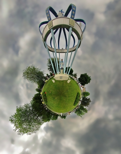 Trois vues différentes du monument dédié à l'année Mariale de 1954.
