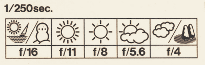 hiver) avec une ouverture de f16 utiliser la valeur ISO(ASA) du film