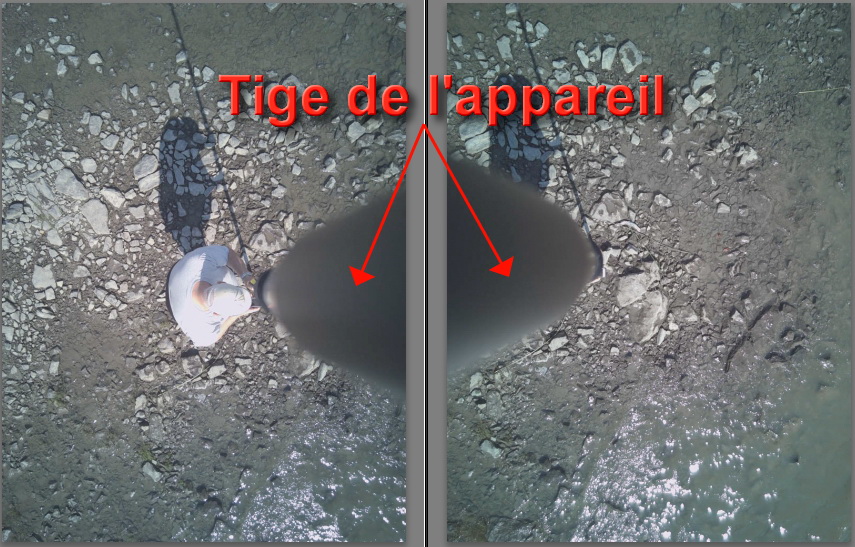 * empreinte angulaire : portion du champ de vision obstruée par la connexion avec la perche.