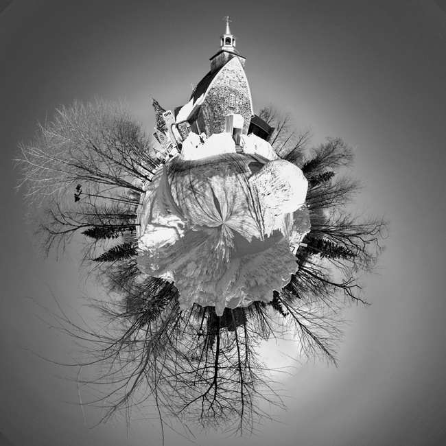 Panorama polaire noir et blanc produit grâce à une déformation en coordonnées polaires