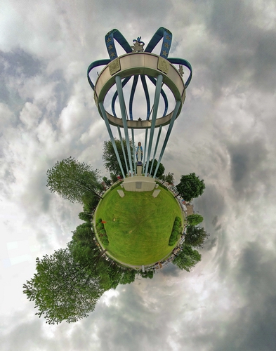 Trois vues différentes du monument dédié à l'année Mariale de 1954.